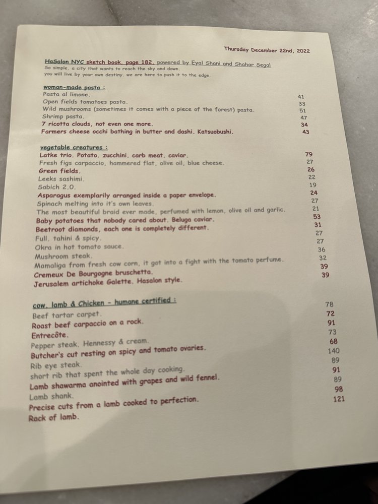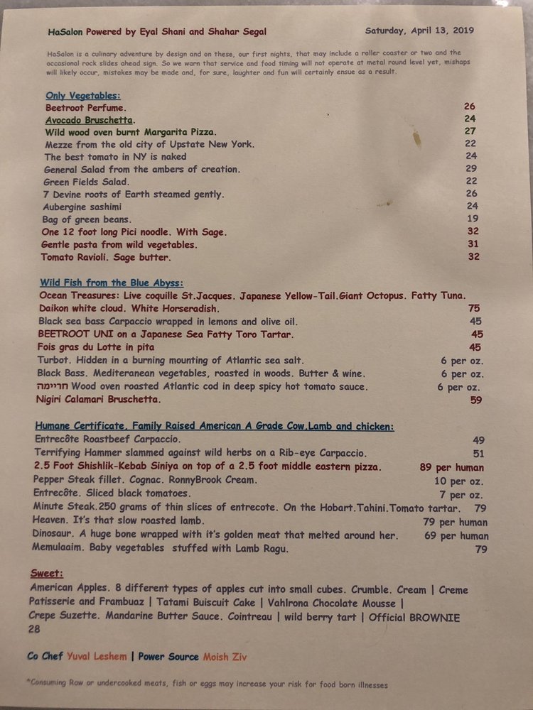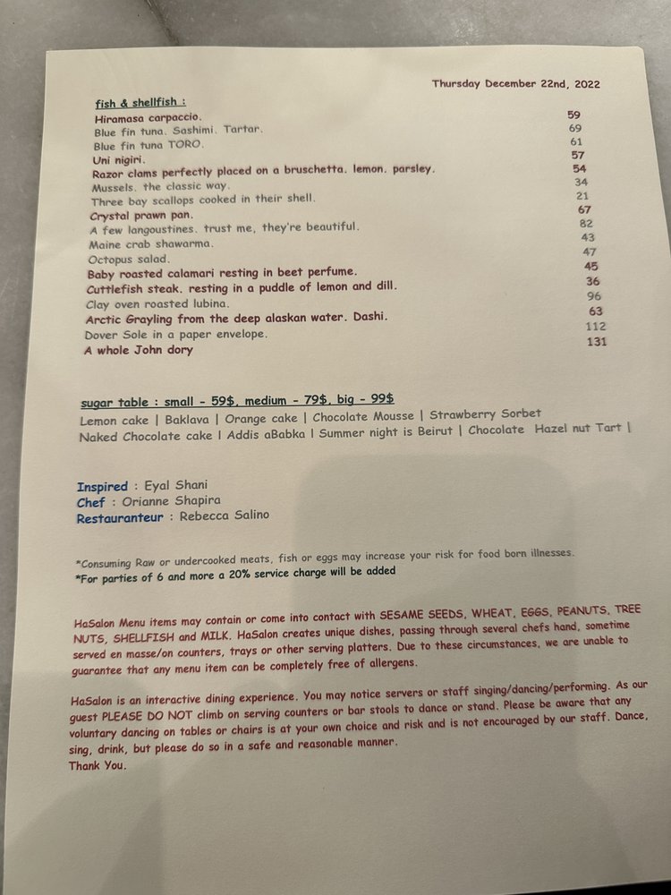 Welcome to HaSalon, a vibrant Mediterranean dining experience located in the heart of New York City at 735 10th Ave. Known for its lively atmosphere, this restaurant thrives on the electric energy of its guests and staff, making each visit memorable. The menu features bold offerings like Hell's Chicken, Maine Crab Shawarma, and the sensational Pasta Carbonara made from pure uni, that transports you straight to the Mediterranean coast.
